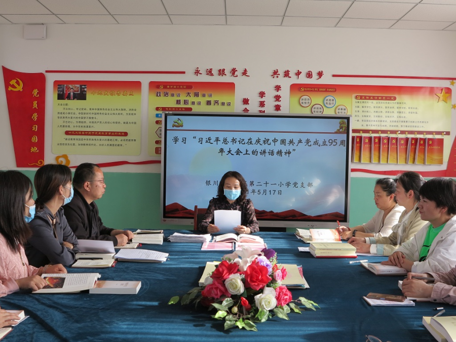 会上由支部书记李丽芳同志带领全体党员认真学习“习近平总书记在庆祝中国共产党成立 95 周年大会上的讲话精神”。中国产生了共产党,这是开天辟地的大事变。这一开天辟地的大事变深刻改变了近代以后中华民族发展的方向和进程,深刻改变了中国人民和中华民族的前途和命运,深刻改变了世界发展的趋势和格局。在95年波澜壮阔的历史进程中,中国共产党紧紧依靠人民,跨过一道又一道沟坎,取得一个又一个胜利,为中华民族作出了伟大历史贡献。