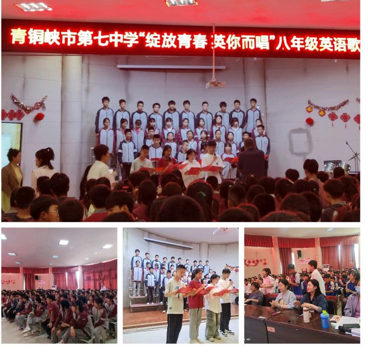 为丰富同学们的校园文化生活,激发同学们学习英语的兴趣,提高同学们学习英语的积极性,从而进一步营造良好的英语学习氛围,有效提升同学们英语核心素养和艺术修养,在学校领导的安排部署、八年级各任课教师的大力支持,八年级英语备课组老师的的筹备下,我校于2024年5月31日下午,于会议室举行“绽放青春·英你而唱”八年级英语歌唱比赛。