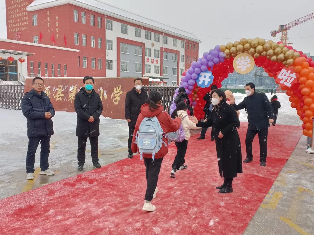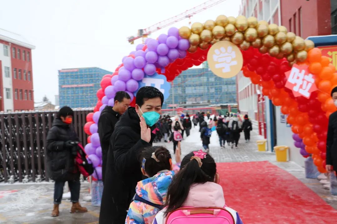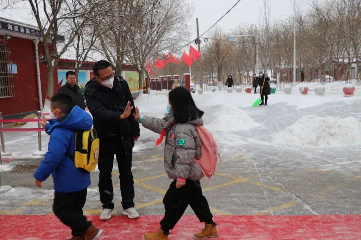 2月13日早上,在洁白雪花的伴礼下,我们敲开了本学期的第一天。寂静的校园迎来了久违的同学们,校园又恢复了往日的生机与活力。老师们早早的等候在校门口,等待学子的归来。