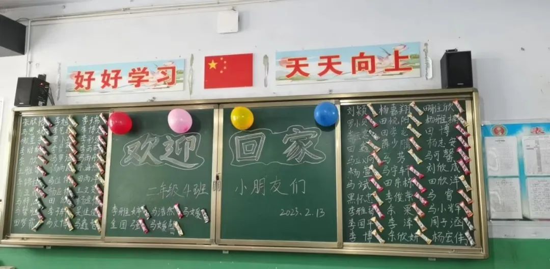写满祝福语的开学板报