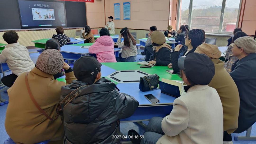 马睿老师为数学老师分享的题目是《用我的视角看培训》。她通过讲解专家讲课视频材料,围绕“会用数学的眼光观察世界,会用数学的思维思考现实世界,会用数学语言表达现实世界”三方面展开,内容十分丰富,形式也多种多样,从知识传递的角度来反应每个人教学不能只局限于书本更要挖掘自己的潜力和创造力,让老师们明白了做一个智慧型、创新型教师的重要性。