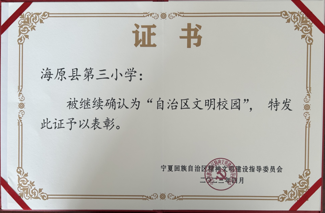 喜报热烈祝贺热烈祝贺海原县第三小学被继续确认为“自治区文明校园”。