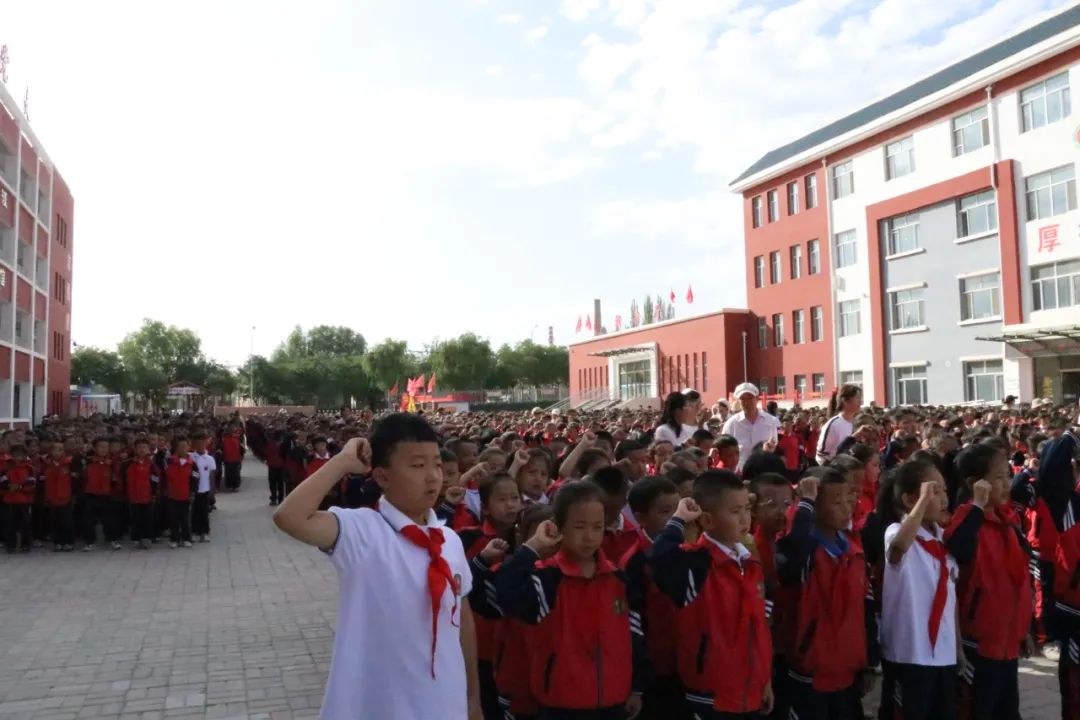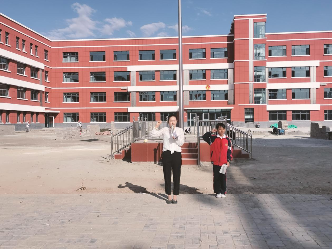 少先队大队辅导员穆老师带领全体学生宣誓: