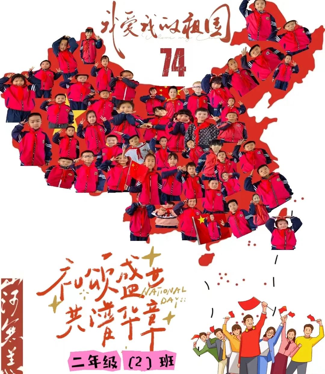 为庆祝新中国成立74周年华诞,我校组织全体学生开展“我与国旗合影”活动。活动期间,大家积极响应,集思广益,选取不同的动作和拍摄角度与国旗合影,用纯真的话语表达对祖国母亲的热爱,祝愿祖国繁荣昌盛、辉煌永驻!