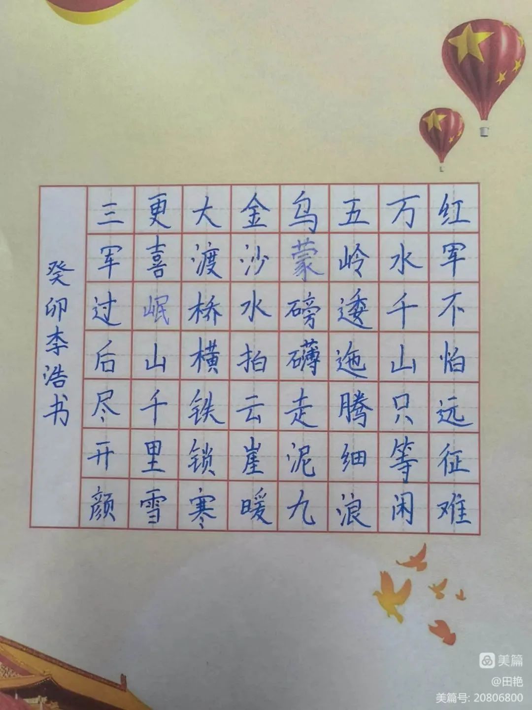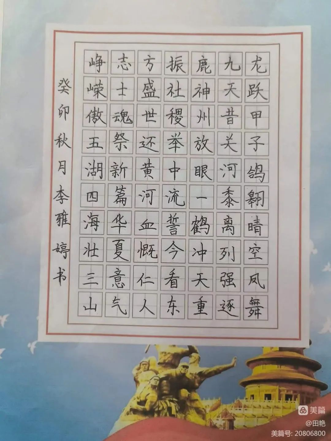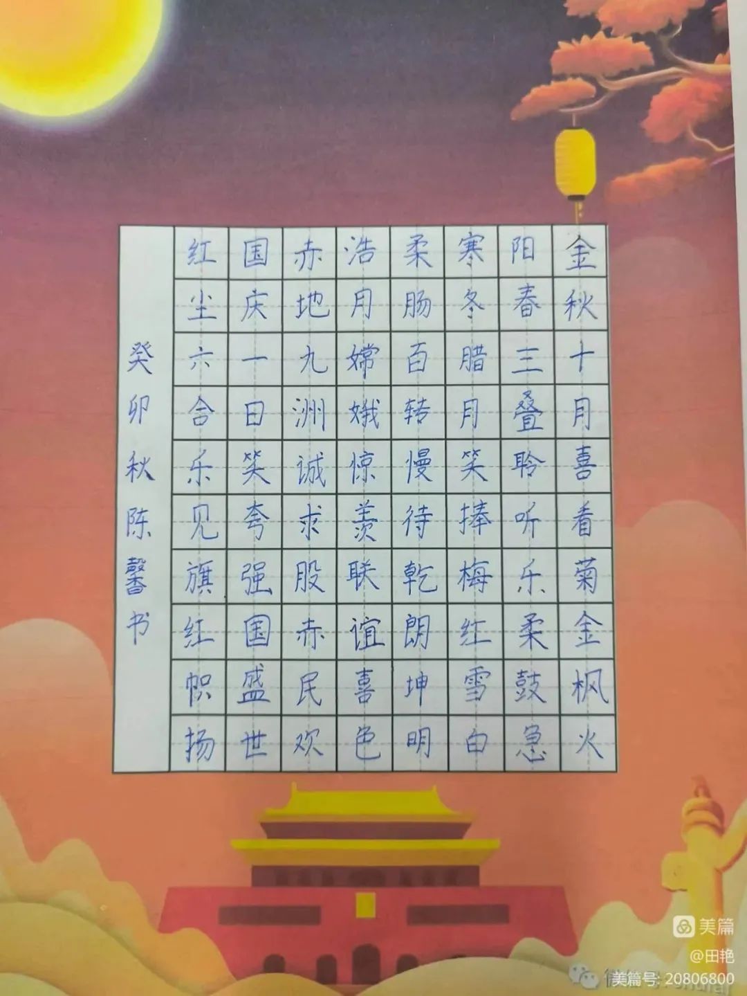 为了培养学生的动手能力,激发学生书写兴趣,营造国庆的爱国氛围。我校书法特色班级以国庆为契机,以书写为形式,以比赛为平台,表达出对祖国的热爱之情和美好祝愿。