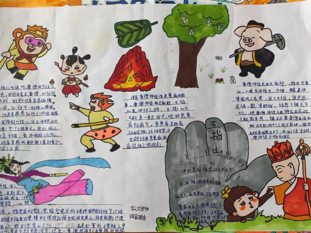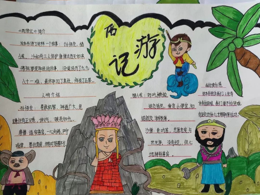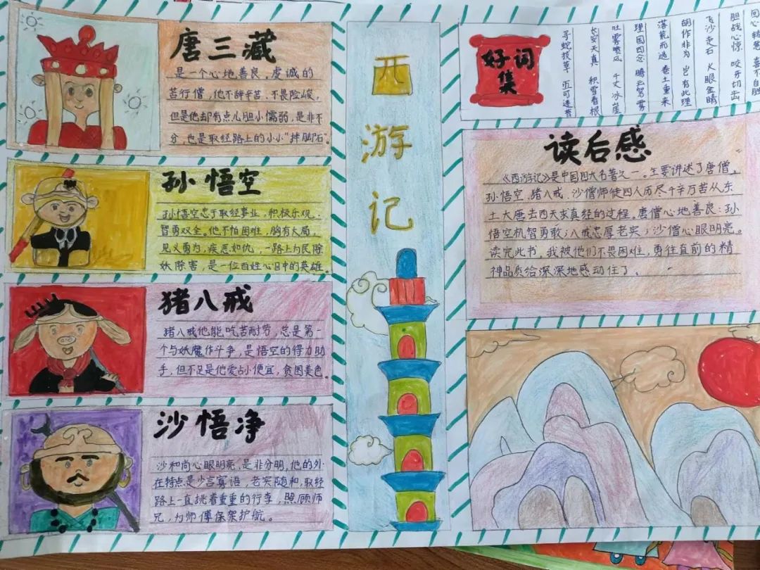 书海世界最浩瀚。同学们不仅阅读了课本“快乐读书吧”中推荐的文学名著,还阅读了中国古典四大名著。他们通过手抄报的方式展示自己的读书收获。