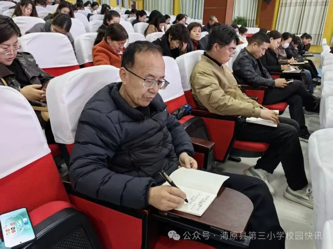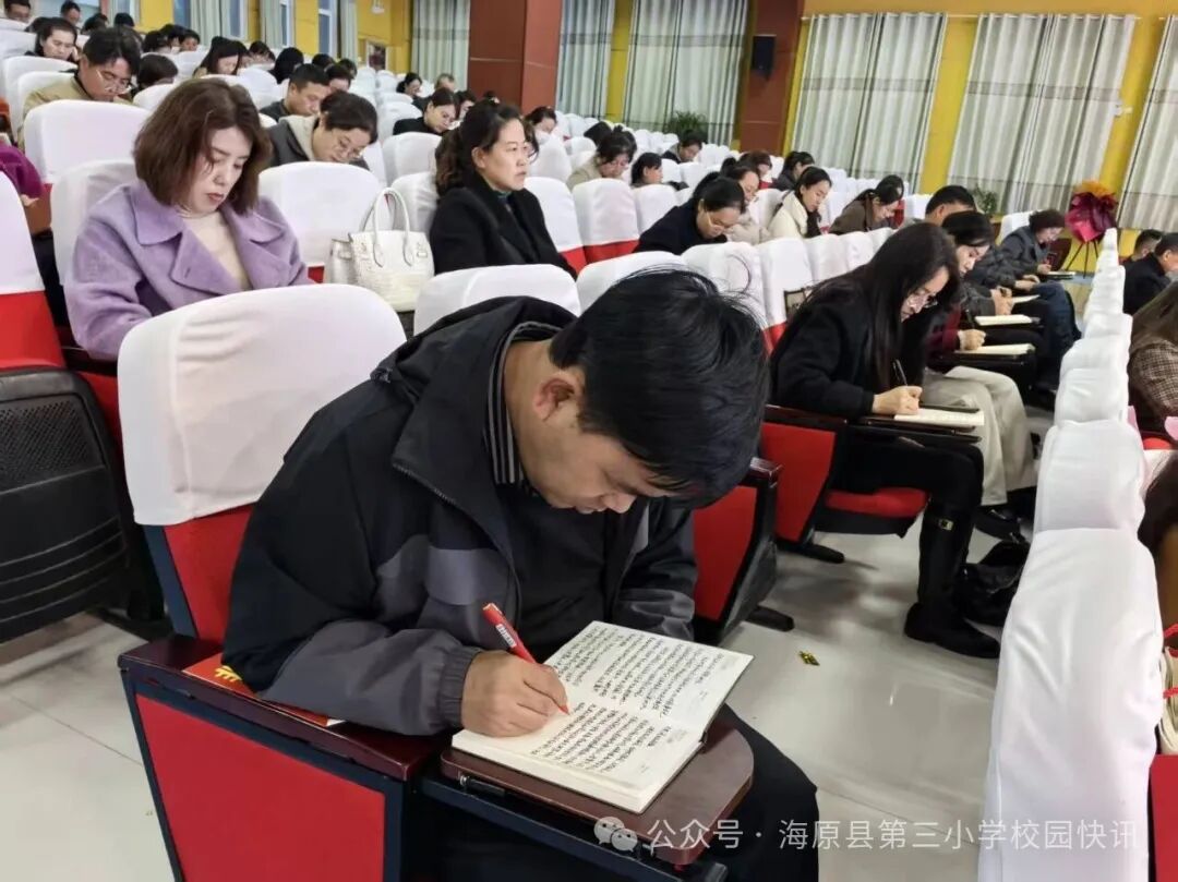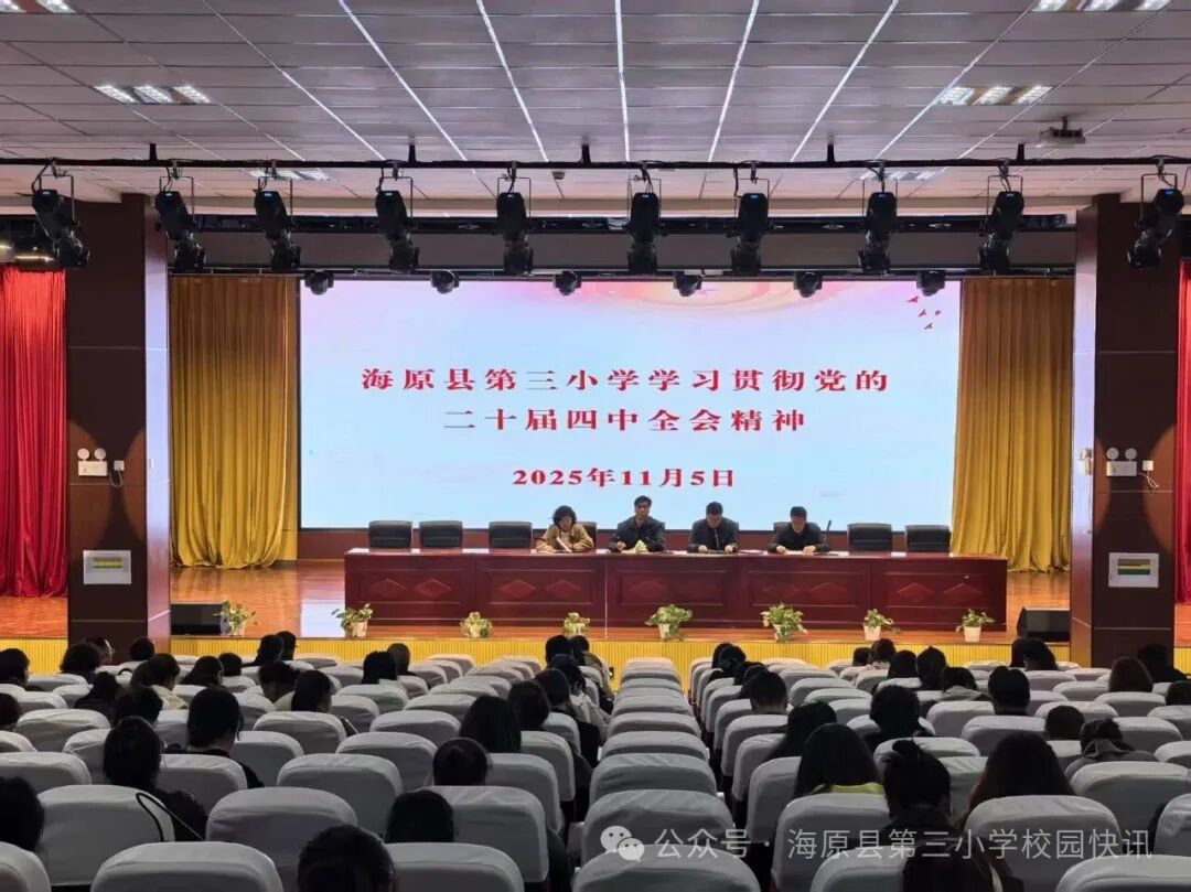 海原三小全体教职工将党的二十届四中全会精神转化为推动学校发展的强大动力,从强化常规管理、培养良好行为习惯等基础环节入手,从个人言行举止做起,脚踏实地,持之以恒,共同将海原三小建设成为孩子们健康快乐成长的和润家园,为党的教育事业贡献应有的力量!