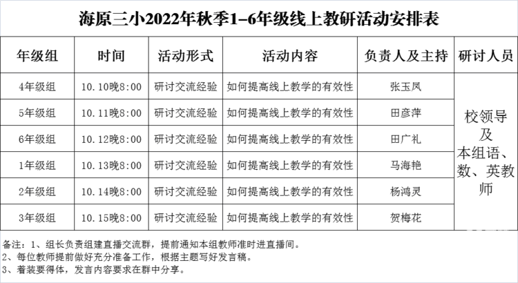 为了落实文件精神,提高线上教学的有效性,我校进一步加强包组领导巡课制度,布置开展以年级组为单位的线上教研活动。