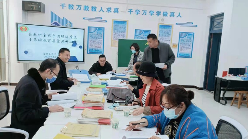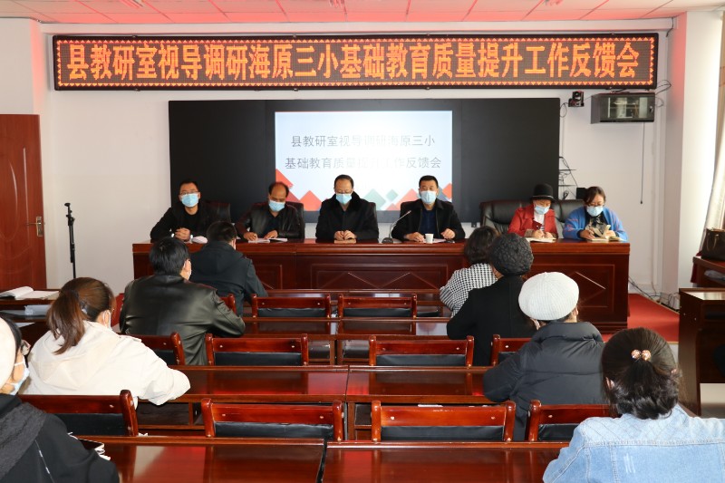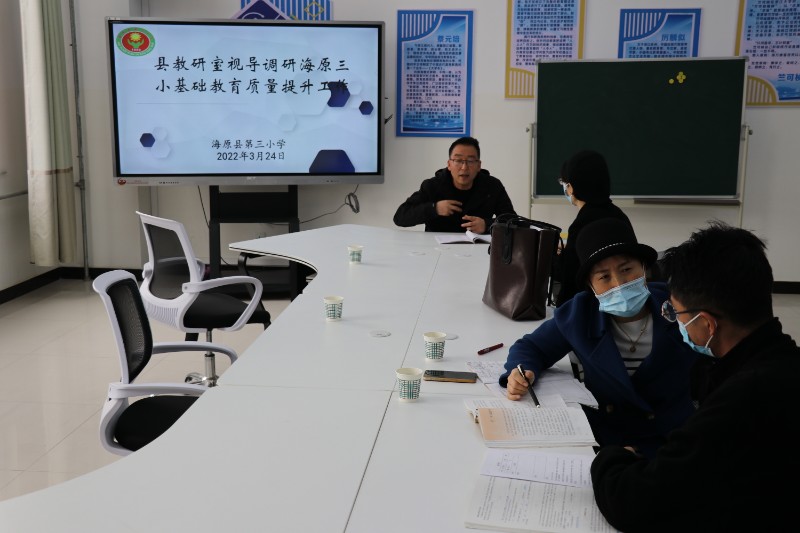 为全面贯彻落实《海原县基础教育质量提升行动实施方案》《海原县基础教育质量提升“5+1”系列活动》《海原县教研室教研员“五包”工作方案》和《海原县2022年基础教育教研工作要点》等文件精神,2022年3月24日海原县教研室一行7人莅临我校,从基础教育质量提升“5+1”系列活动、常规教学、“互联网+教育”等方面的开展与落实进行了全面、细致的调研视导。