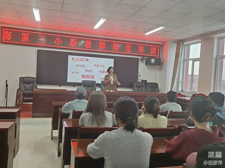 培训会上,主管教学副校长语重心长地叮嘱年轻的老师们心怀热爱,肩负责任,在工作中多学、多看、多问、多请教,尽快成长为一名合格的、优秀的青年教师。