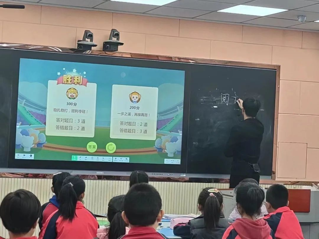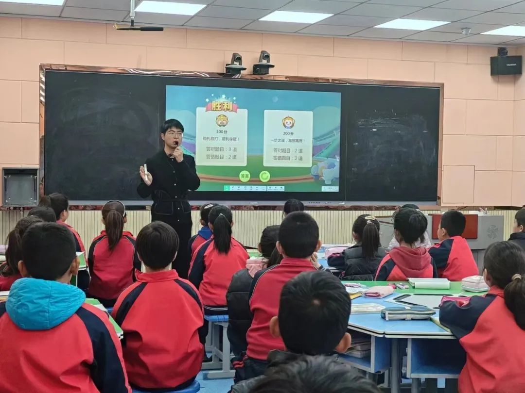 田玉龙老师的《中国古代寓言故事》整本书阅读推进课,课堂伊始,田老师以游戏的形式调动学生的学习积极性。