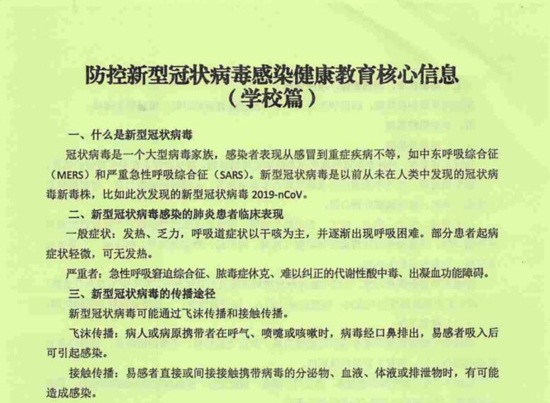 防控新型冠状病毒感染健康教育核心信息(学校篇)