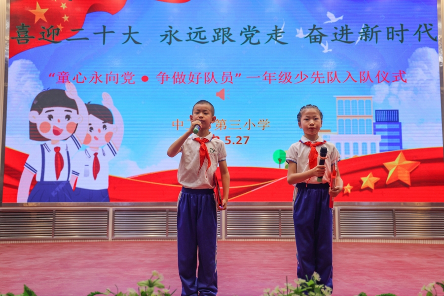 中卫三小2022年“喜迎二十大争做好少年”一年级入队简报