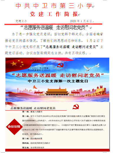 中卫三小党支部“志愿服务送温暖 走访慰问老党员”简报