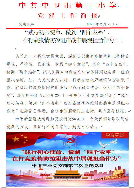 中卫三小“践行初心使命、做到‘四个表率’ 在打赢疫情防控阻击战中展现担当作为”