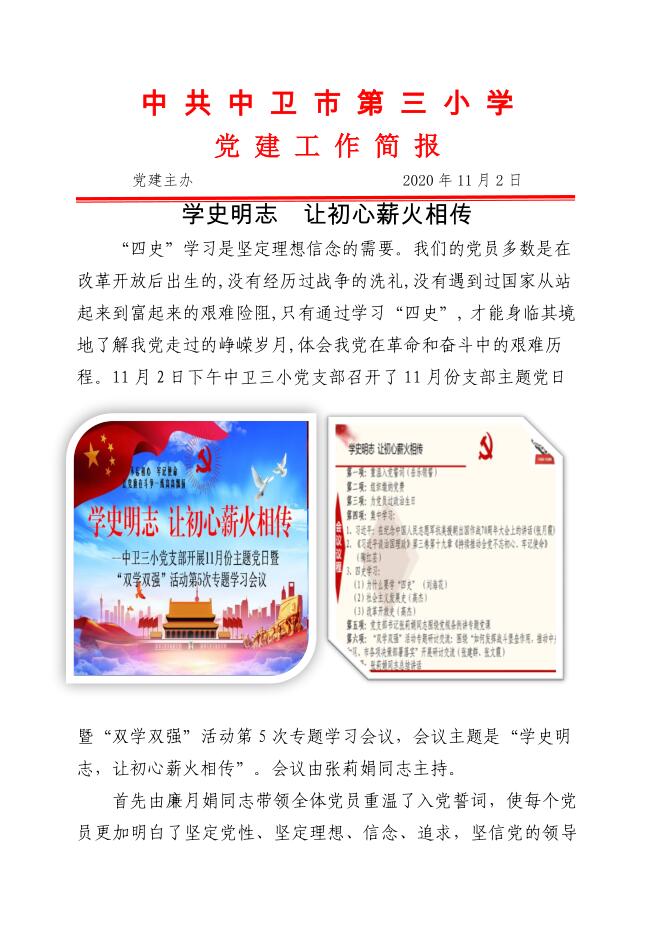 中卫三小十一月支部主题党日——学史明志 让初心薪火相传