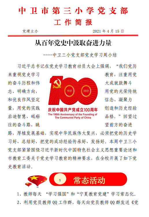 发布时间:2021-04-15 17:00 栏目:党建动态 发布单位:中卫三小党支部 点击量:3556 【公开】