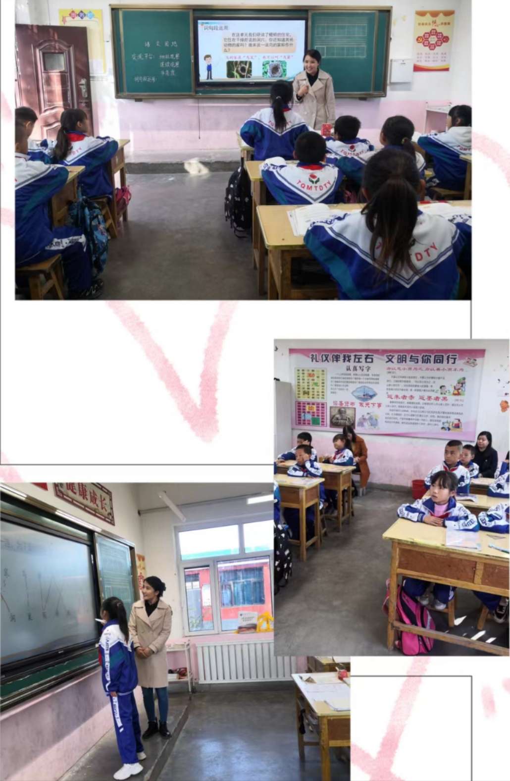 王召兄老师授课的内容是四年《语文园地三》。她结合本单元所学课文展开交流平台内容的学习,与孩子们一起总结观察的方法,体会准确生动的表达,理解句中的关键词语,体会其表情达意的作用。考虑到学生的学情将问题简单化,降低了课堂学习难度,促使更多的孩子能够参与课堂活动。
