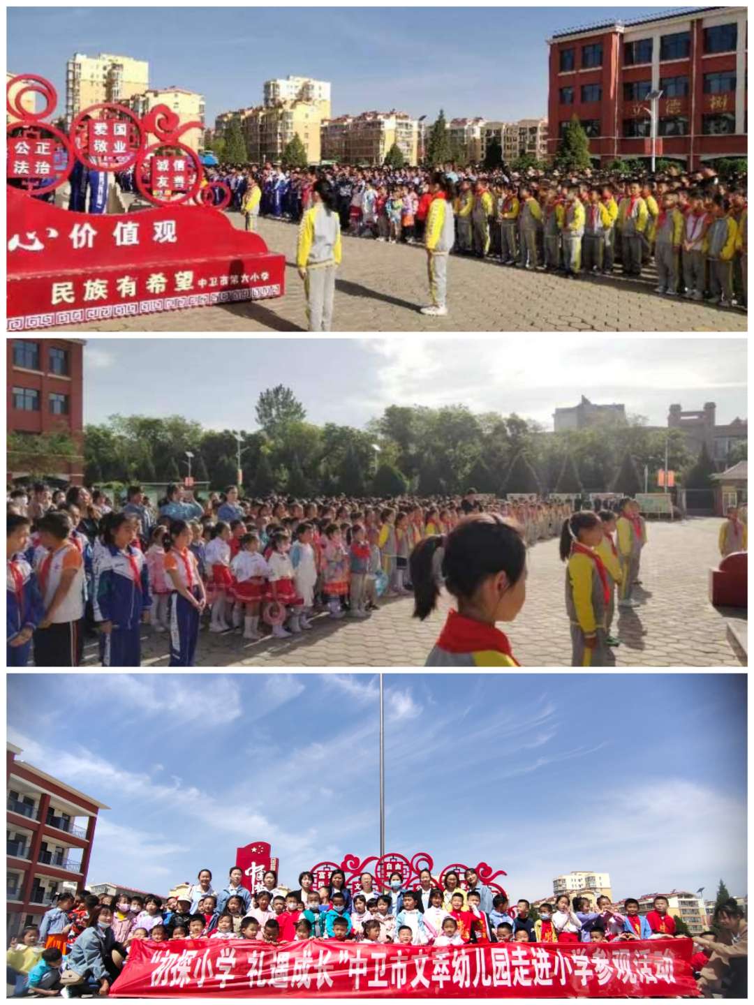 迎着朝阳,小朋友在老师的带领下,有序进入中卫市第六小学,首先迎接他们的是庄严的升旗仪式。他们精神饱满地站在队伍旁,看哥哥姐姐们的升旗,并跟随哥哥姐姐们行注目礼,感受到作为小学生在升旗时的庄严和肃穆,升旗活动结束后,孩子们在升旗台前集体合影。