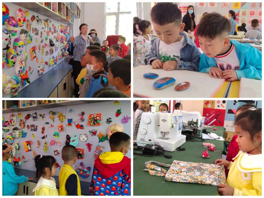最后,孩子们走进了陶艺坊、3D打印、缝纫坊、剪纸室、石头画室、固彩沙画室、合唱室、云厨房、铜管乐训练室,所有的一切都让孩子们感到新鲜。他们不由的发出感叹,原来这就是小学呀!