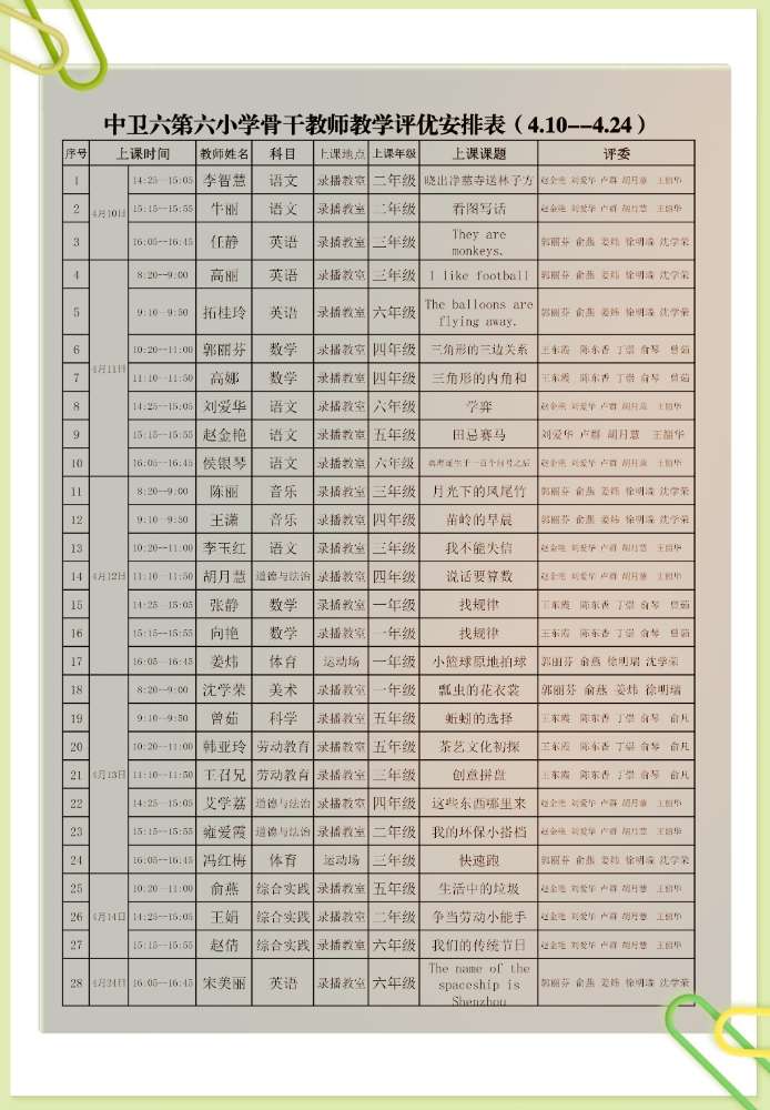 —中卫六小语文、道德与法治、综合实践骨干教师评优课纪实