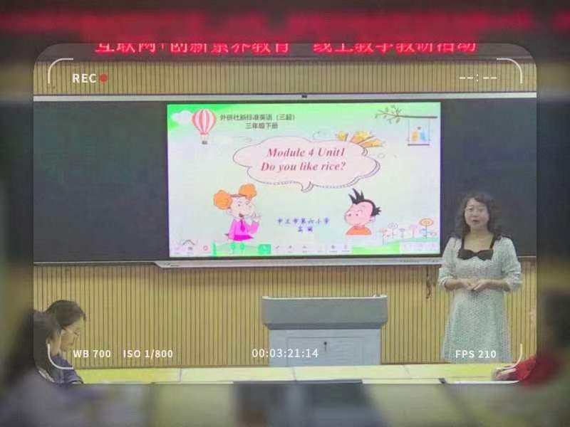 第二节由中卫市第六小学的王慧君老师执教的三年级下册《Module4 Unit1 Do you like meat?》。王老师善于把握低年级学生好动的特点,安排了动手游戏环节。不仅调动了学生课堂学习的积极性,也提高了学生学习英语的兴趣。她善于对学生进行提问,精准语言引导,丰富的表情已经深深的吸引了学生的注意力。整节课利用微课、视频等多媒体进行了跨学科的融合和思政教育的渗透。