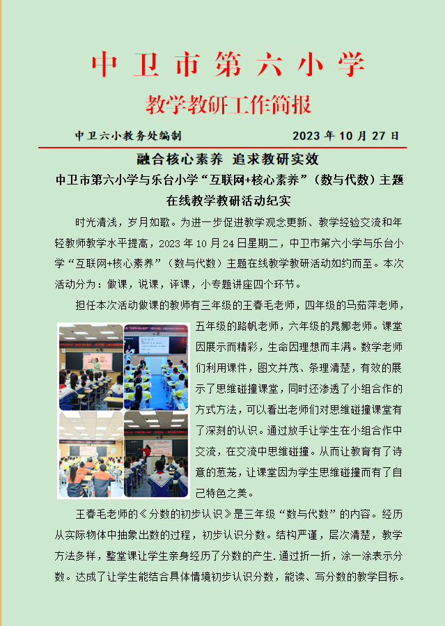 中卫市第六小学与乐台小学“互联网+核心素养”(数与代数)主题在线教学教研活动纪实