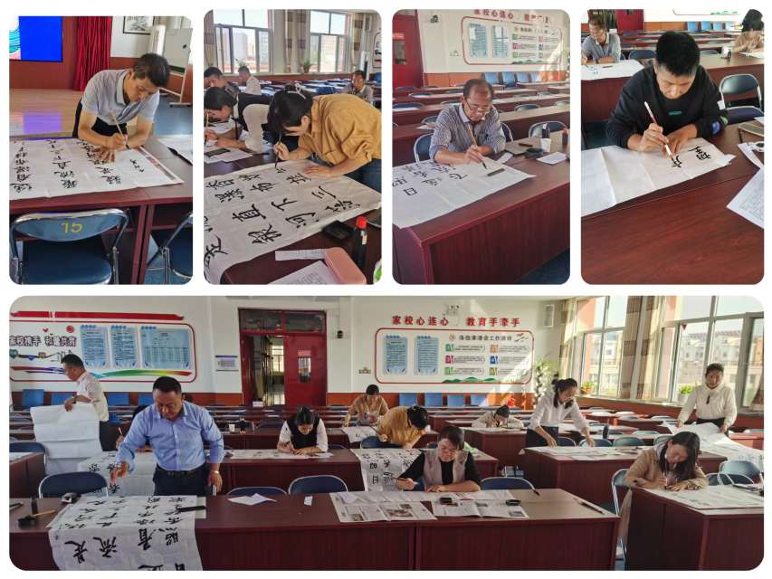 “古墨轻磨满几香,砚池新浴灿生光”。老师们纷纷展纸挥毫,提按顿挫,舞动出一幅幅隽美的画面。一幅幅书法作品,或古朴厚实、稳健刚劲,或潇洒飘逸、大方得体,或灵秀清丽、如沐春风。