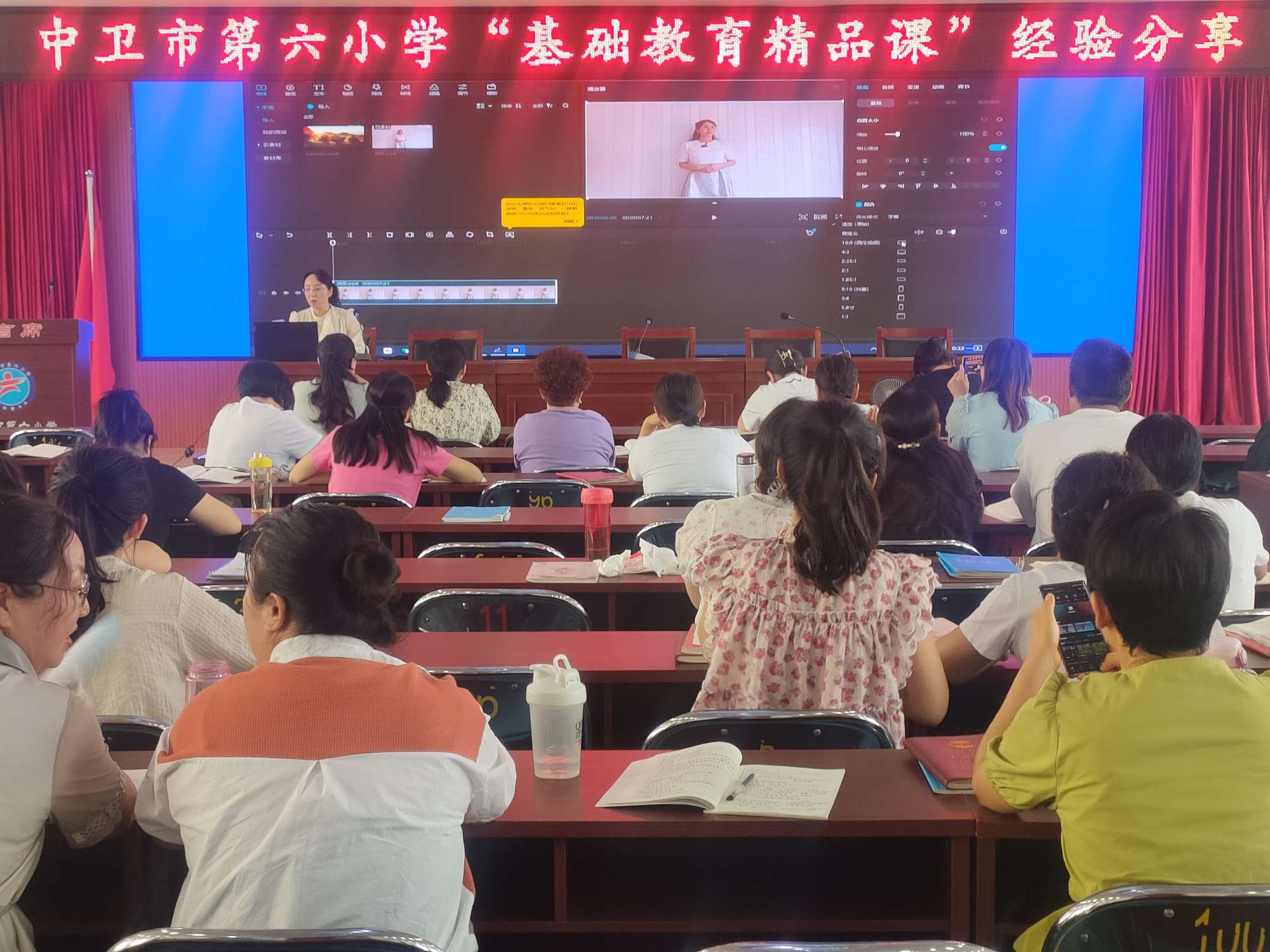 2023年8月16-18日,中卫市第六小学开展了为期三天的校本培训。在8月17日的培训中,王晓丽老师进行了“基础教育精品课”录制经验分享,对学校教师进行了“基础教育精品课”录制的培训,促进了学校教师信息技术与教学能力的提升。