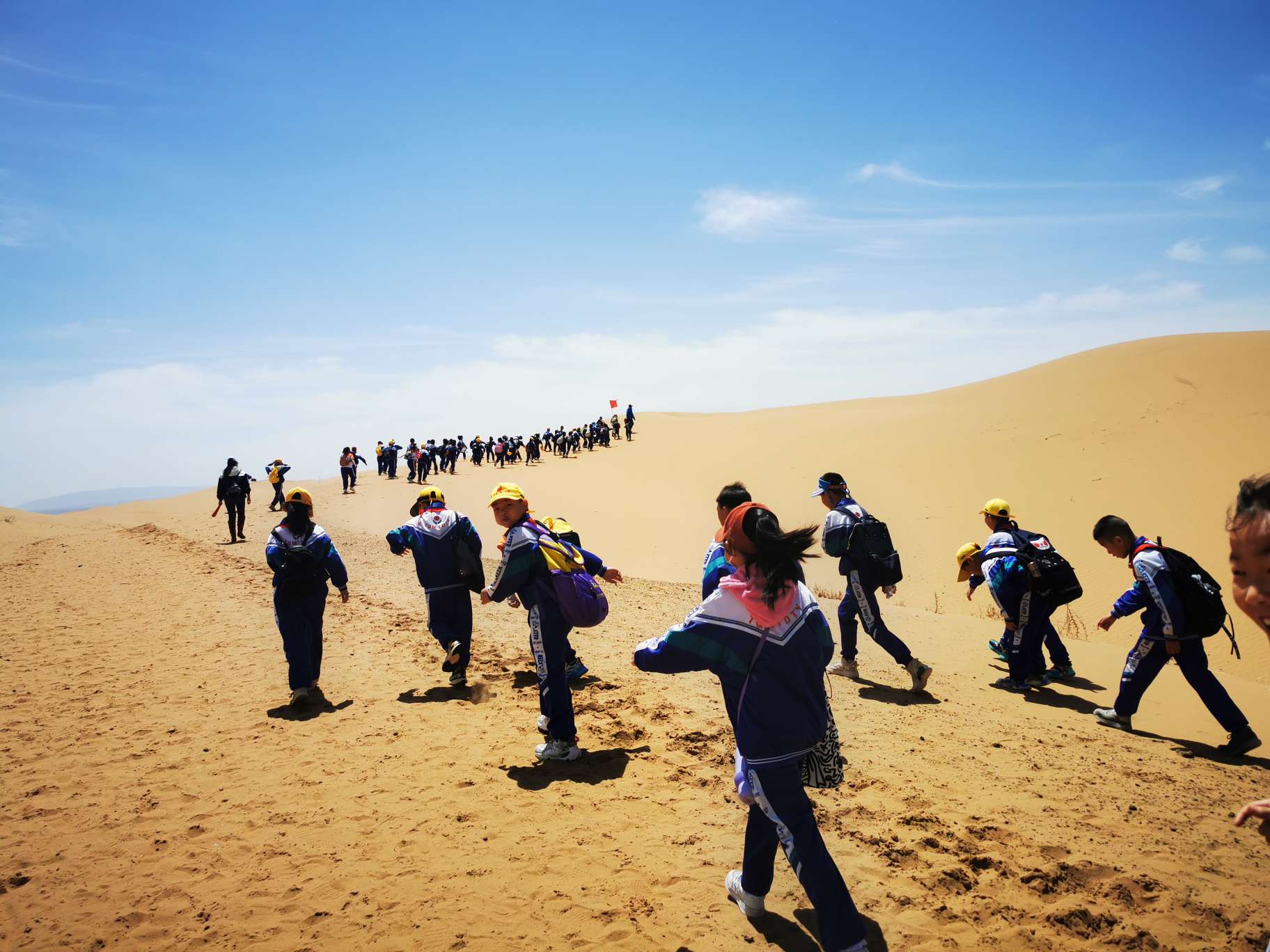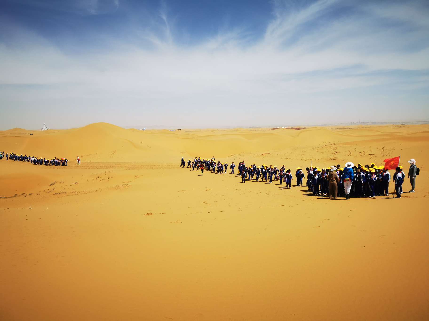 孩子们走在浩瀚无垠的沙漠里,看着跌宕起伏的沙丘,踩着柔美金灿的沙粒,感受着大自然的壮美和沙漠的苍凉。徒步穿越沙漠之行,让孩子们在行走中收获坚毅的品格。