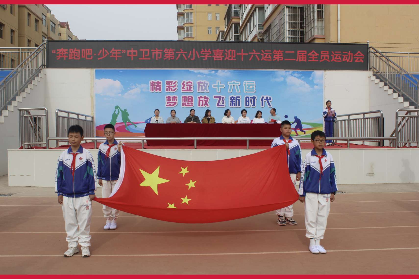 伴随着激昂的《运动员进行曲》,鲜艳的五星红旗在前方引路,彩旗飘飘展风采,伴着明媚的阳光,彩旗队六年级1班的学生们身姿挺拔,步伐矫健,散发出无比的朝气与活力,象征着中卫市第六小学乘风破浪,砥砺前行。