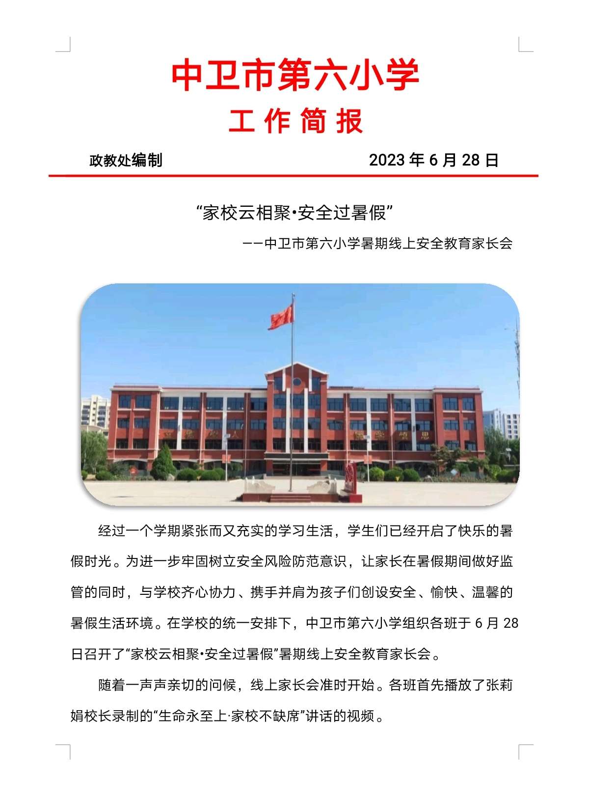 发布时间:2023-07-02 09:19 分类:德育工作简报 发布单位:中卫市第六小学 点击量:1794 【公开】