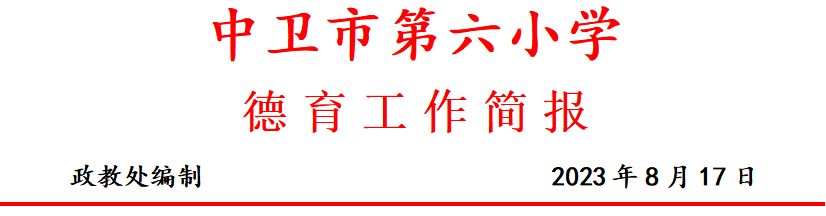 发布时间:2023-08-20 11:51 分类:德育工作简报 发布单位:中卫市第六小学 点击量:2985 【公开】