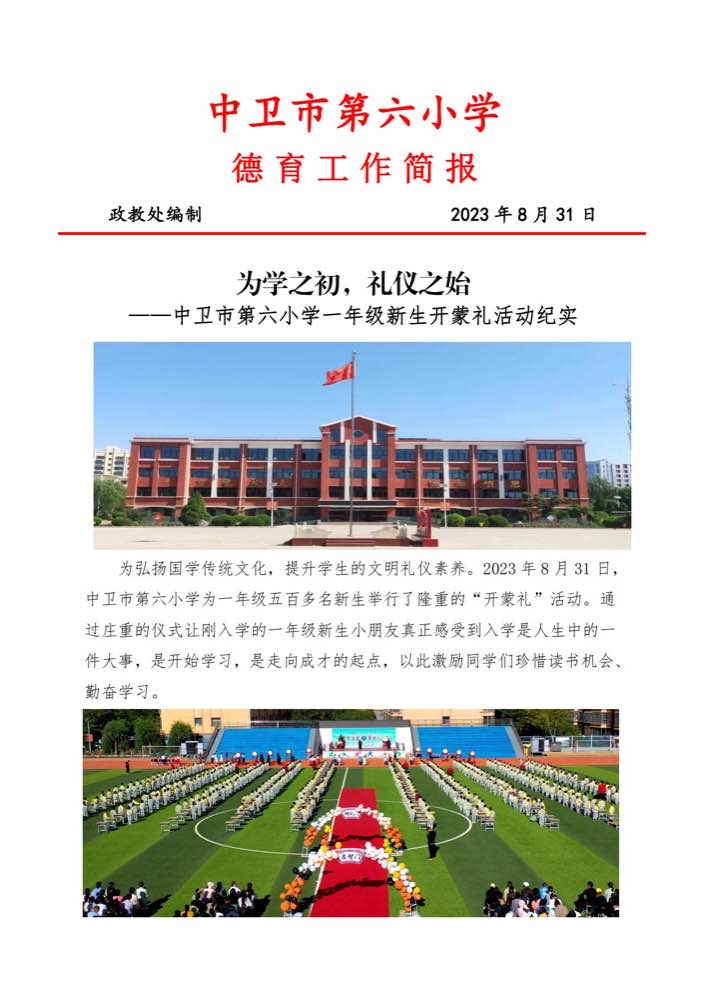 发布时间:2023-09-01 09:31 分类:德育工作简报 发布单位:中卫市第六小学 点击量:1764 【公开】