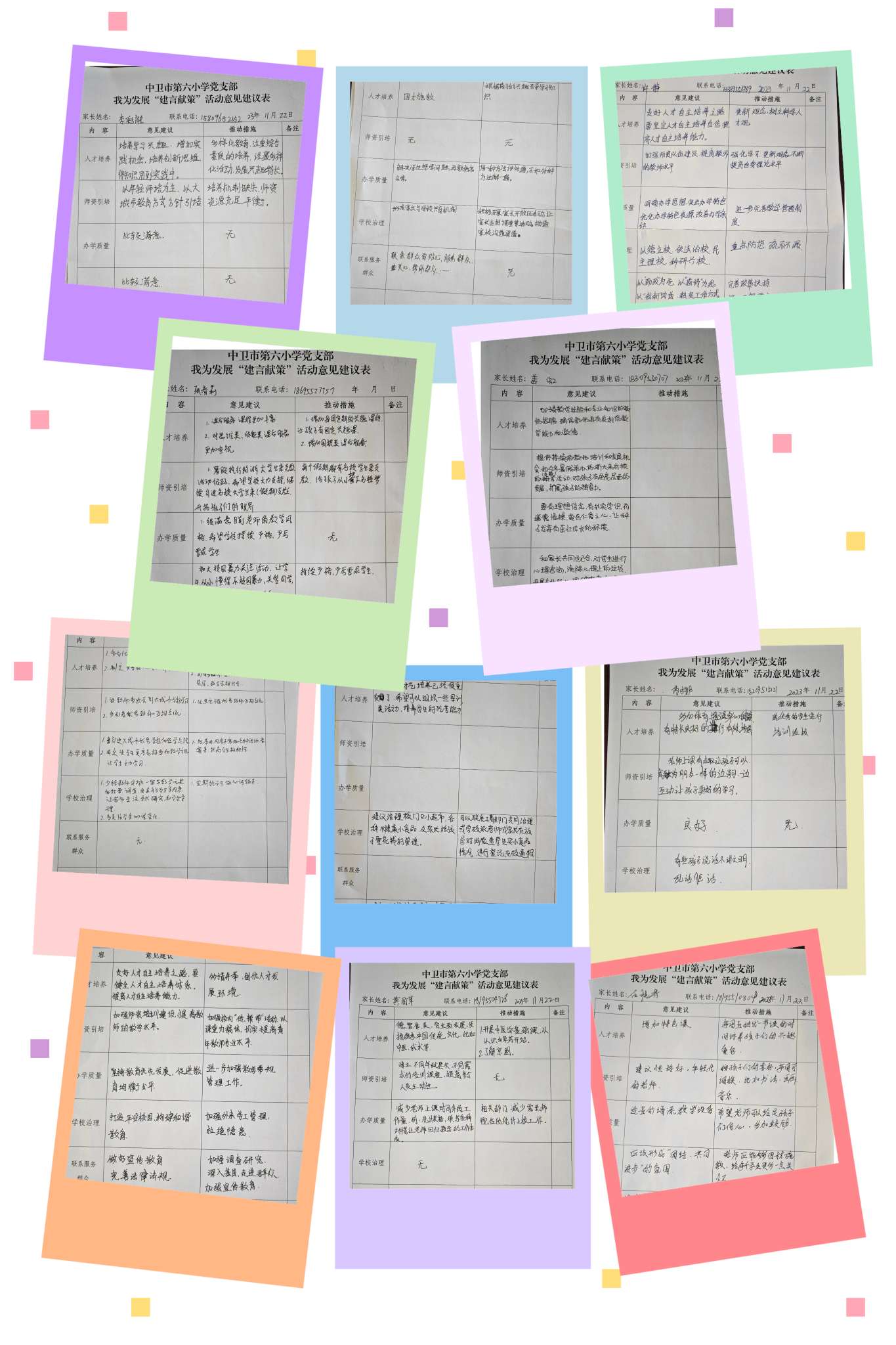 随后,王警官又进行了安全防范知识宣传。她分别从防火安全、交通安全、食品安全、烟花爆竹安全、网络知识安全等多方面进行宣传。家长们认真听讲,积极与王警官互动,并且认真做了笔记,所获颇多。他们还填写了我为发展“建言献策”意见建议表,给学校的发展提出了宝贵的意见。