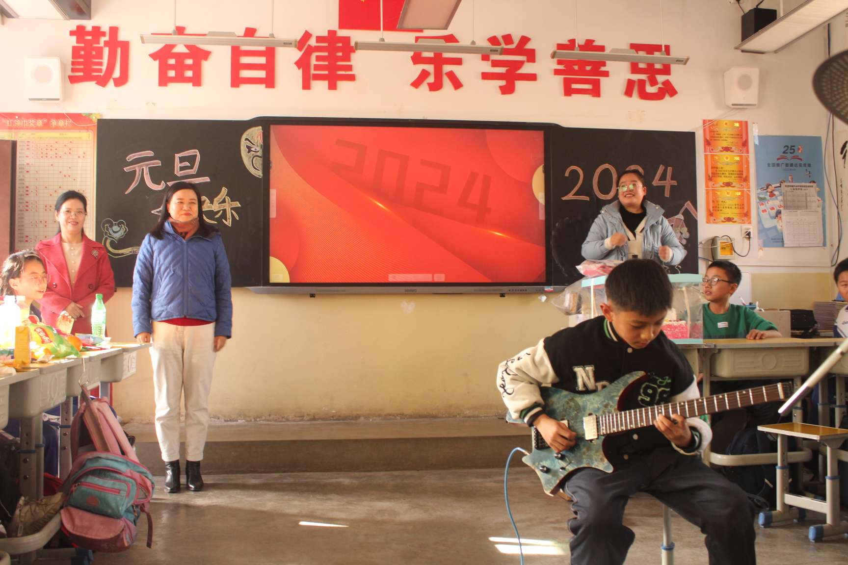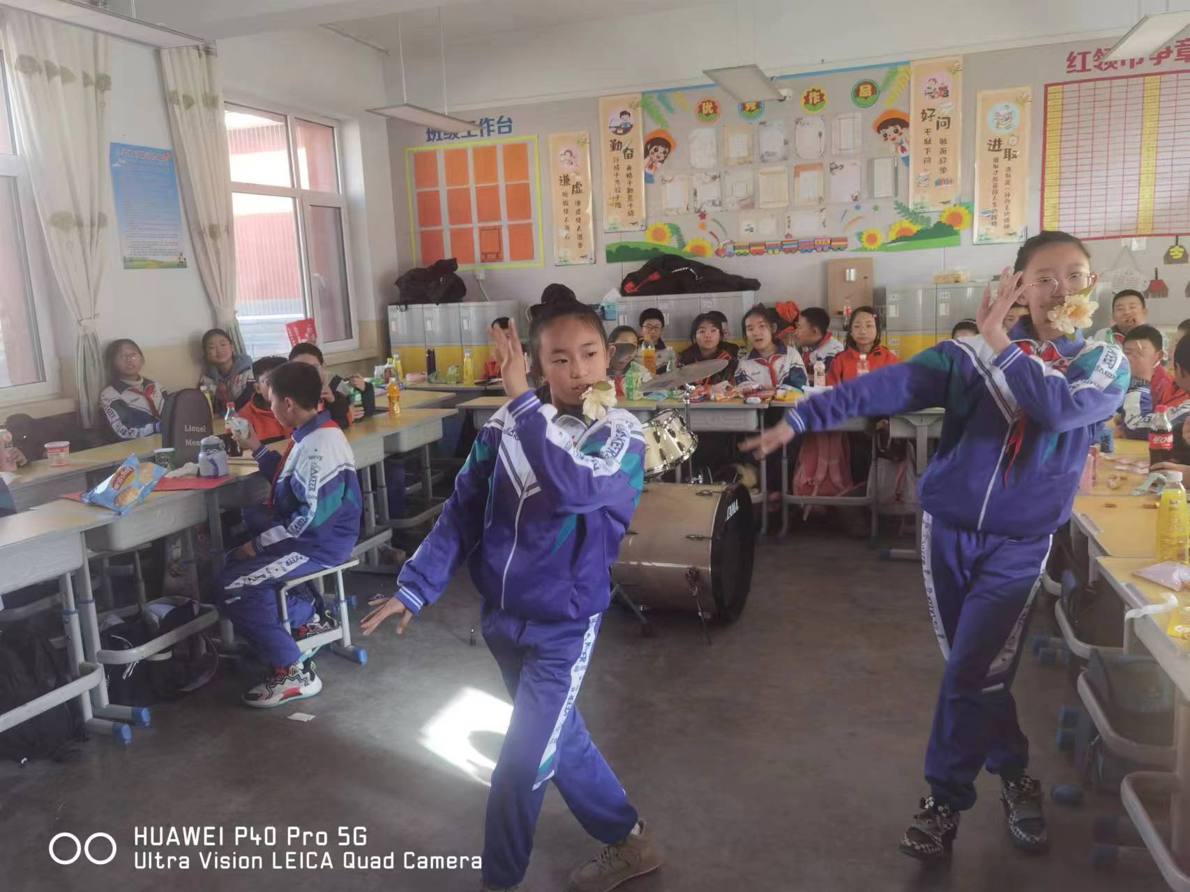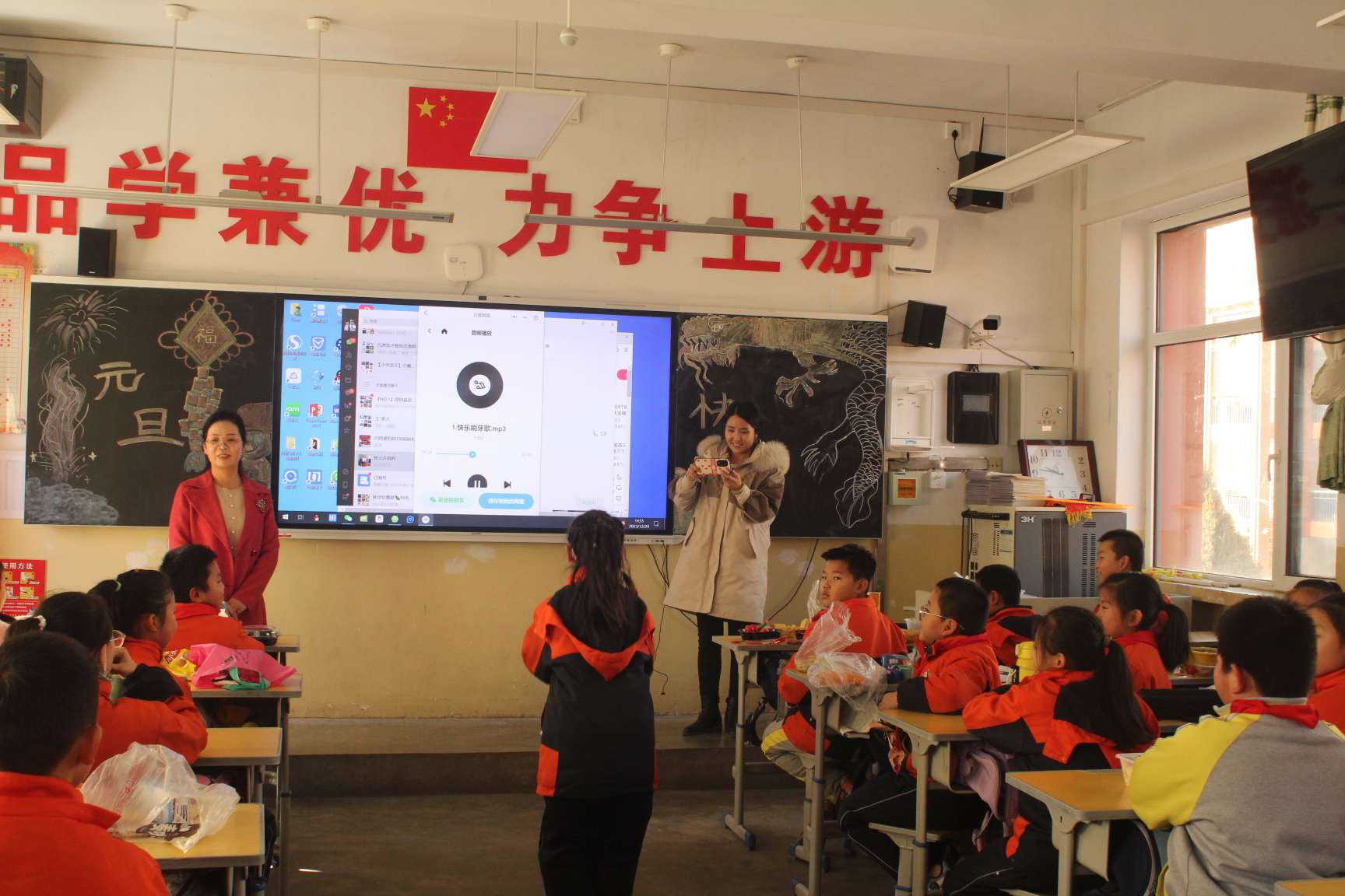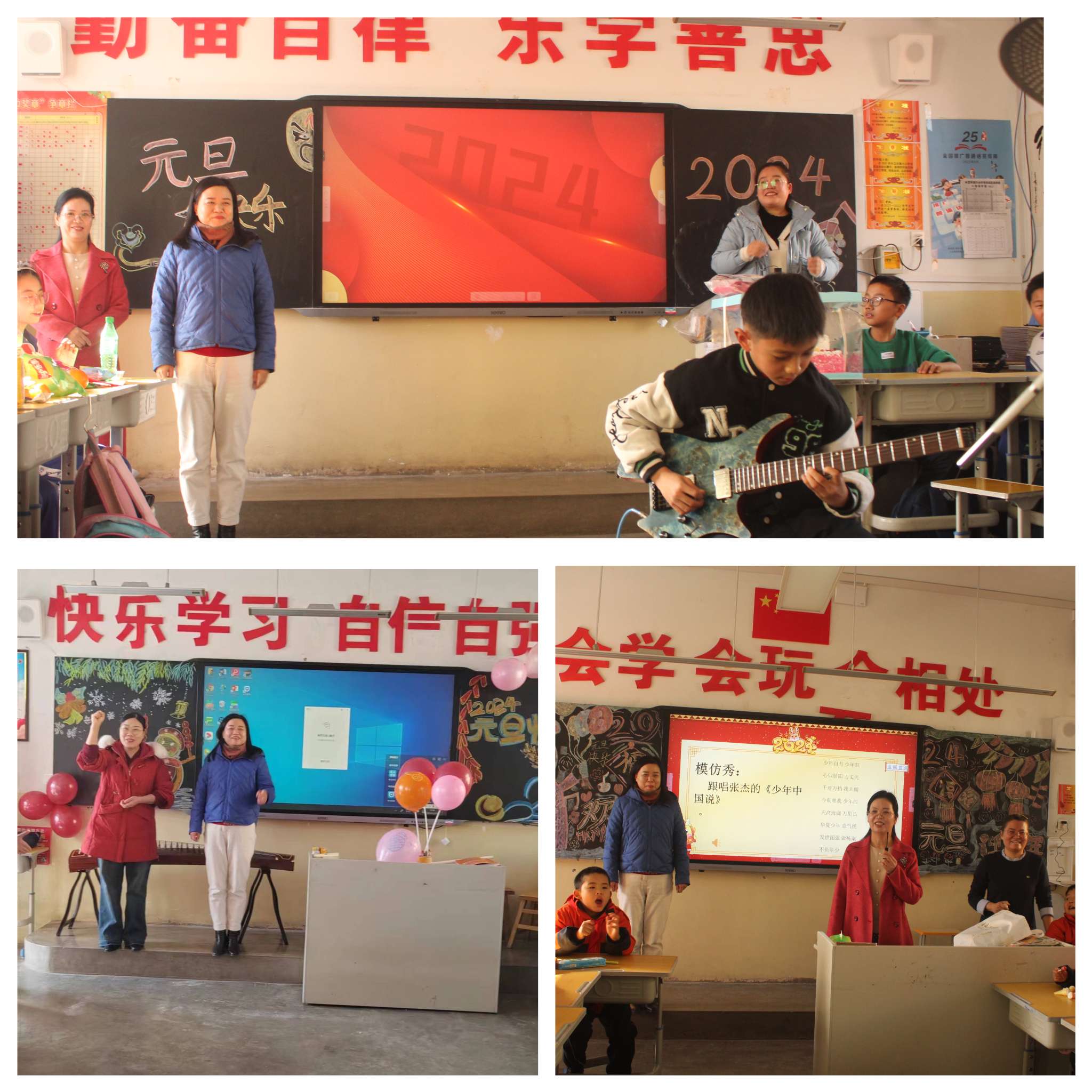 五彩缤纷的气球和彩带将学校各班级装饰一新,同学们精心准备的节目更让人目不暇接。虽值寒冬,但各班气氛热烈。