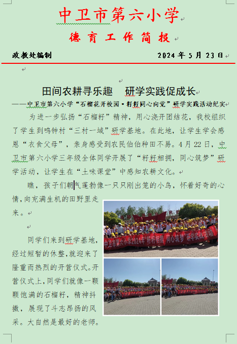 “田间农耕寻乐趣 研学实践促成长”---中卫市第六小学“石榴花开校园 籽籽同心向党”研学活动纪实