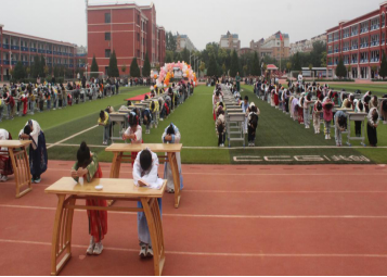 踏过“启智门”,同学们一定能走向成功、成才之路。“穿过智慧门,跨越鲤鱼盆”愿同学们开启智慧,化鱼成龙,逆流向上,勇敢进取、精进不休、平步青云,志向高远,未来必将金榜题名。