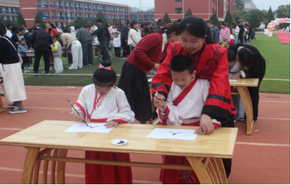 君子正衣冠,拜恩师,点痣明智,破笔开蒙,击鼓明志,诵读经典。带着所有师长的谆谆教诲,带着所有家长的殷切期盼,小小少年将在努力与坚持中学到新的知识;将在理解与责任中懂得做人的道理,将在拼搏与进取中赢得欢笑和掌声。祝愿所有学童在未来的日子里笃行致远,学有所成。