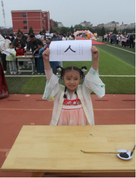 “人生聪明识字始”,写字识字是学习知识文化的第一步。今天开笔礼仪式上,一年级同学们描写的是一个简单而意义深远的“人”字,寓意着在人生的启蒙阶段,要认认真真写字,堂堂正正做人。