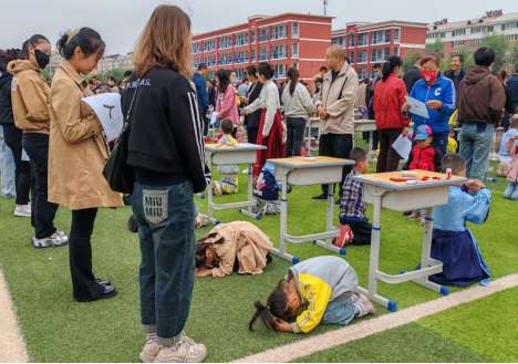 在中国传统文化中,对父母表示尊敬和感激的一种方式是行跪拜礼。对于一年级小学生来说,学习这样的礼节有助于培养他们的道德观念和家庭价值观。今天在这里,孩子们向父母表达自己的感激之情,家长们温暖的拥抱更是给予孩子们无穷的力量,这对于他们的成长和未来的人生道路将产生积极的影响。