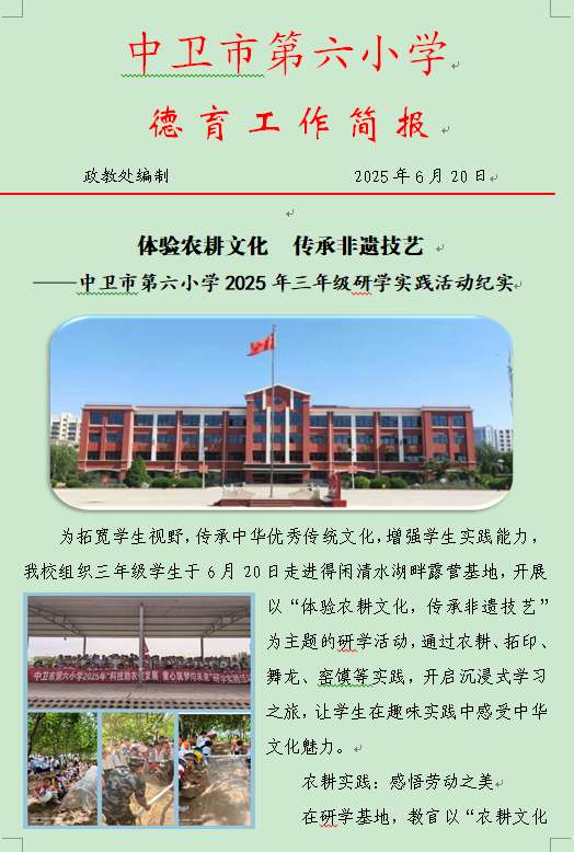 体验农耕文化传承非遗技艺——中卫市第六小学2025年三年级研学实践活动纪实