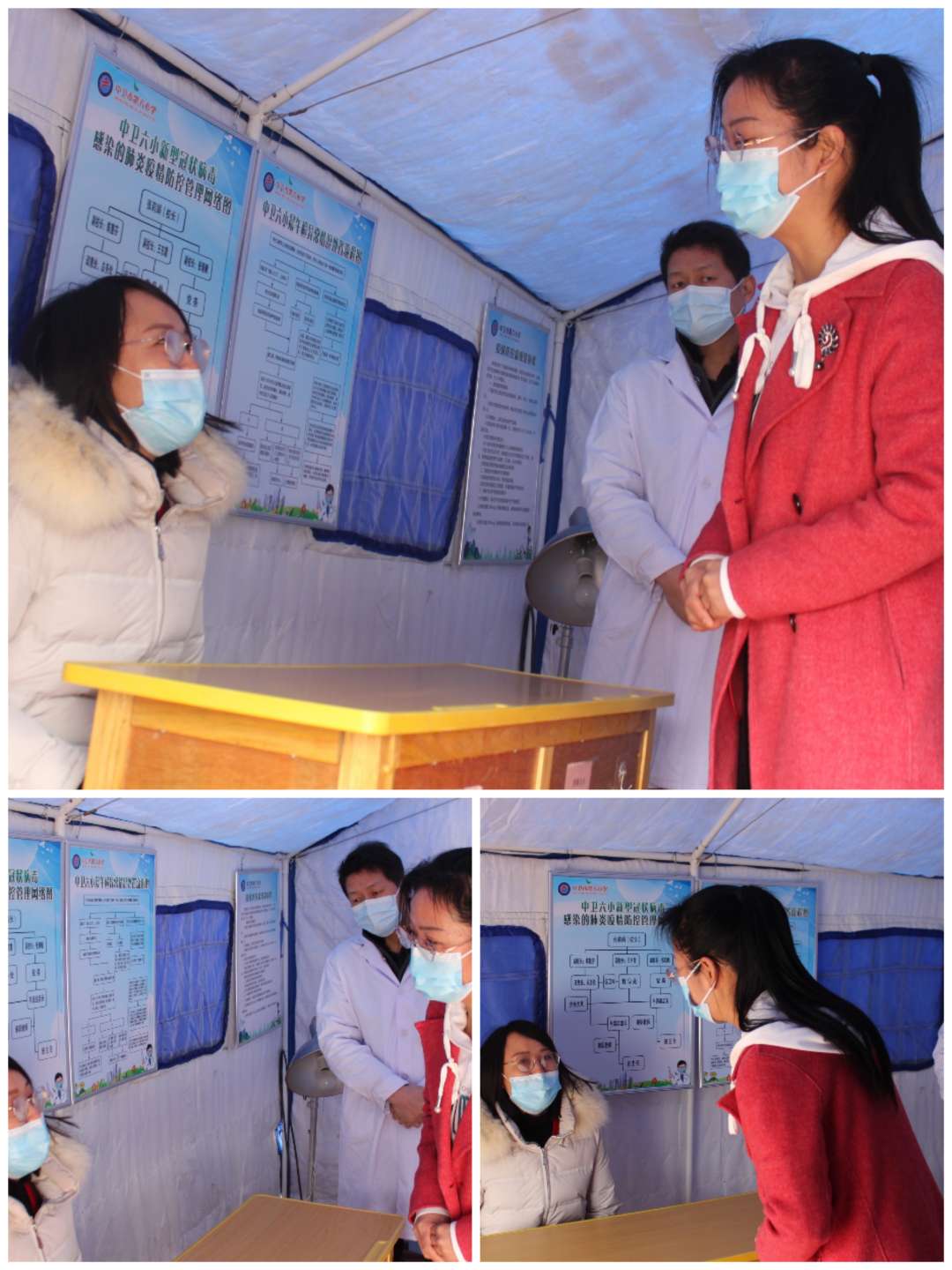 演练模拟师生入校、教室门口、进班上课、上卫生间、课间活动、放学回家六个场景学生出现体温异常后的处置流程。