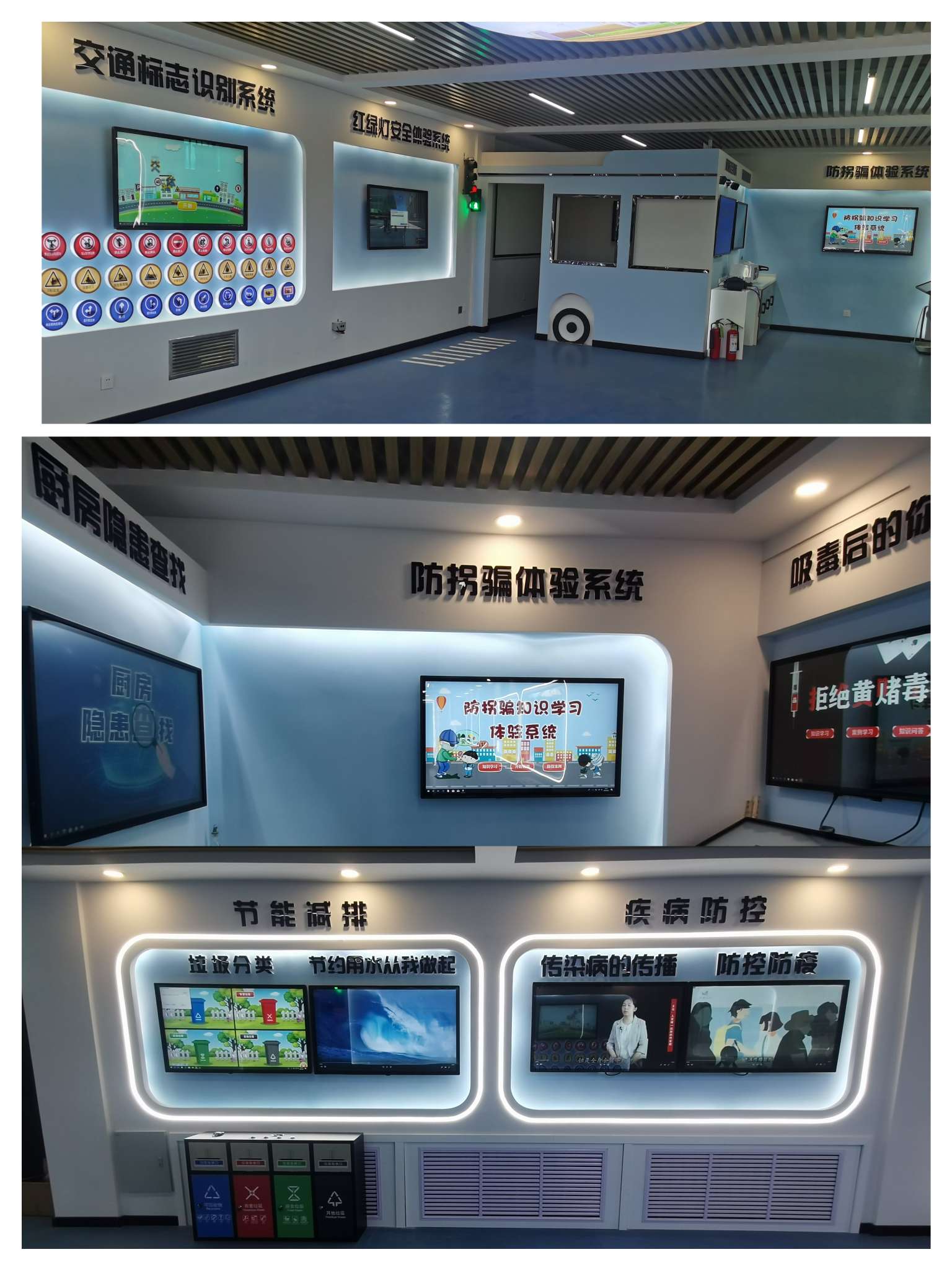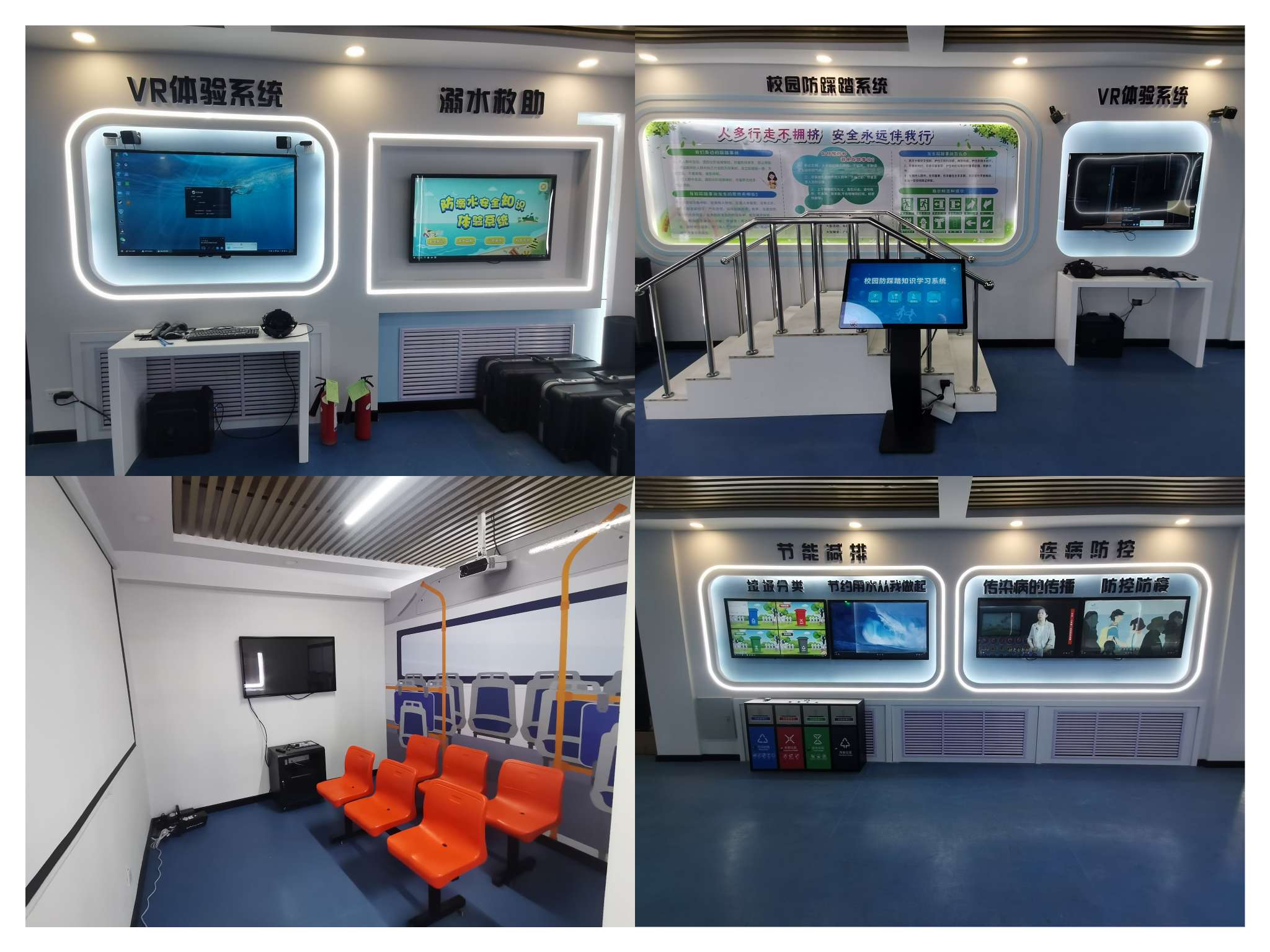 本校新建的“安全教育体验基地”重在突出创新与特色,特别注重针对性和趣味性。占地面积86平方米,投资70多万元,在建设中得到了宁夏教育厅、中卫市教育局的大力支持。“教育基地”内设有校园防踩踏、VR互动体验、模拟红绿灯过马路、模拟公交车逃生等14个学习体验区。通过体验学习让师生掌握更多的安全知识和逃生技能,使安全教育更有针对性和实效性。