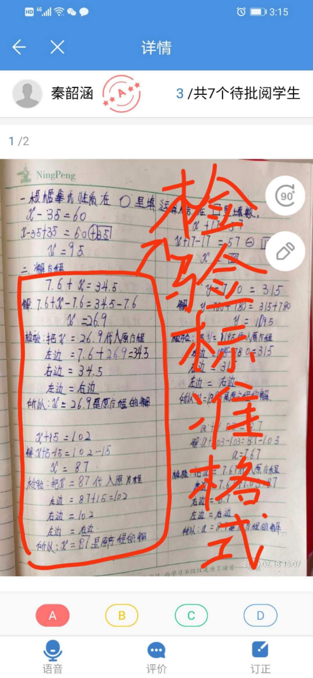 为了及时回复家长和孩子遇到的问题,我利用班级家长微信群进行了投票,投出大家都方便的时间进行集中答疑解惑。对云校家上孩子们上传的每一份作业,也是挨个批阅,给予合理的评价。