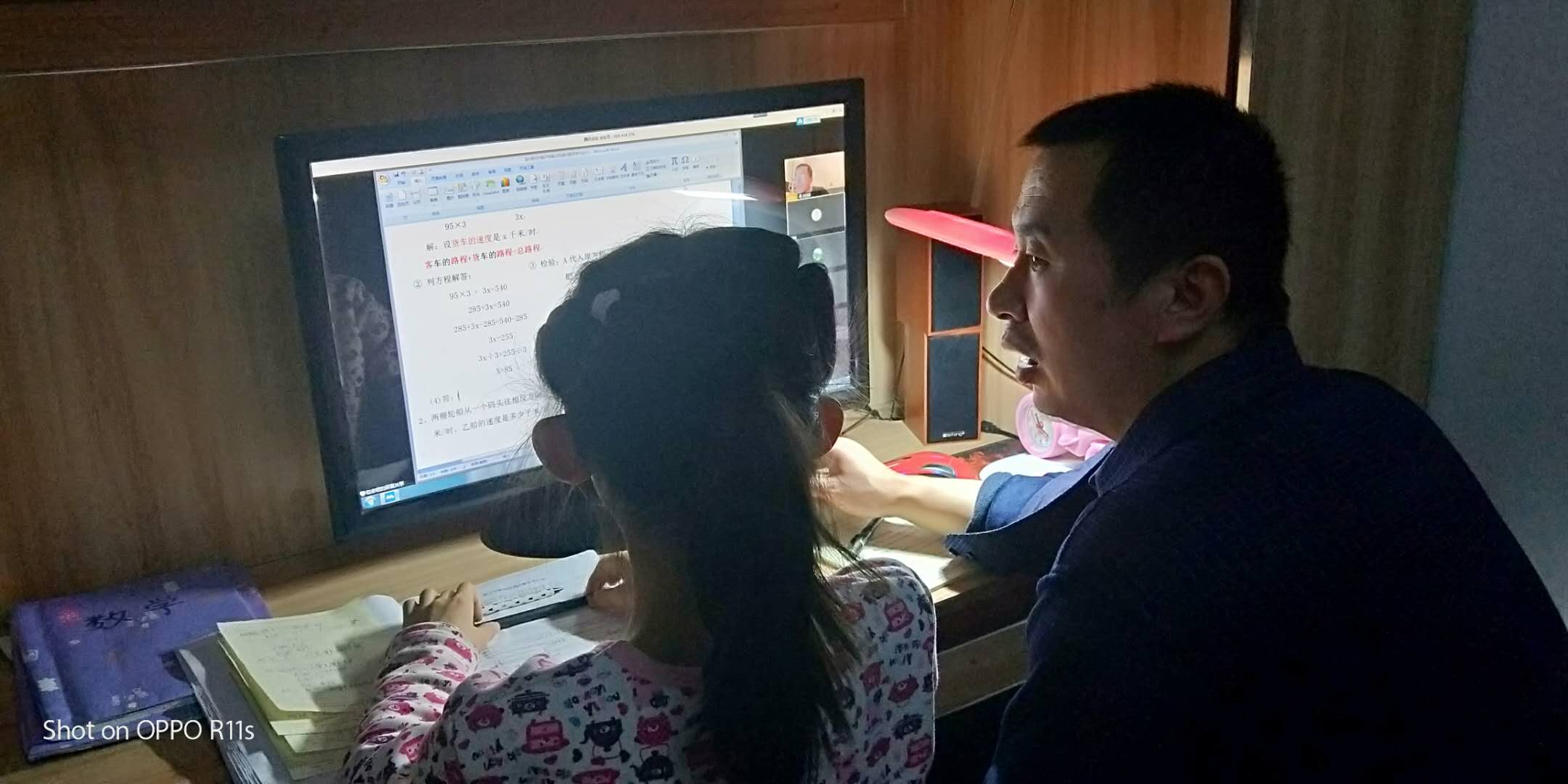 因为家里有二宝,所以我每天工作的时间都是趁着孩子不淘气的时候,把自己关在小卧室里批作业;又或是孩子睡了觉,拿起手机戴上耳机来看孩子们发来的视频、图片作业;每天下午7点多,即使孩子淘气,我也会坐在电脑旁,戴上耳机,和家长、孩子们进视频会议上辅导课,有时候深夜了还在上传视频,批阅作业,布置导学。”