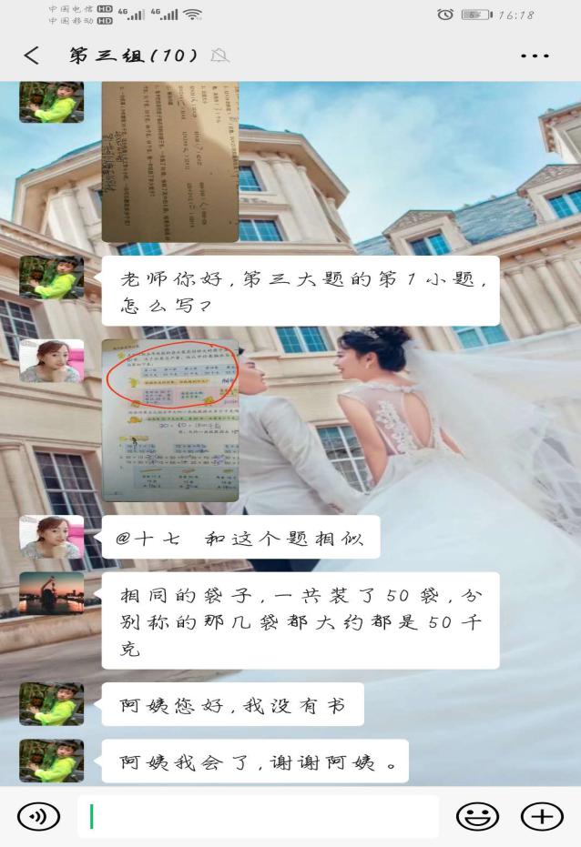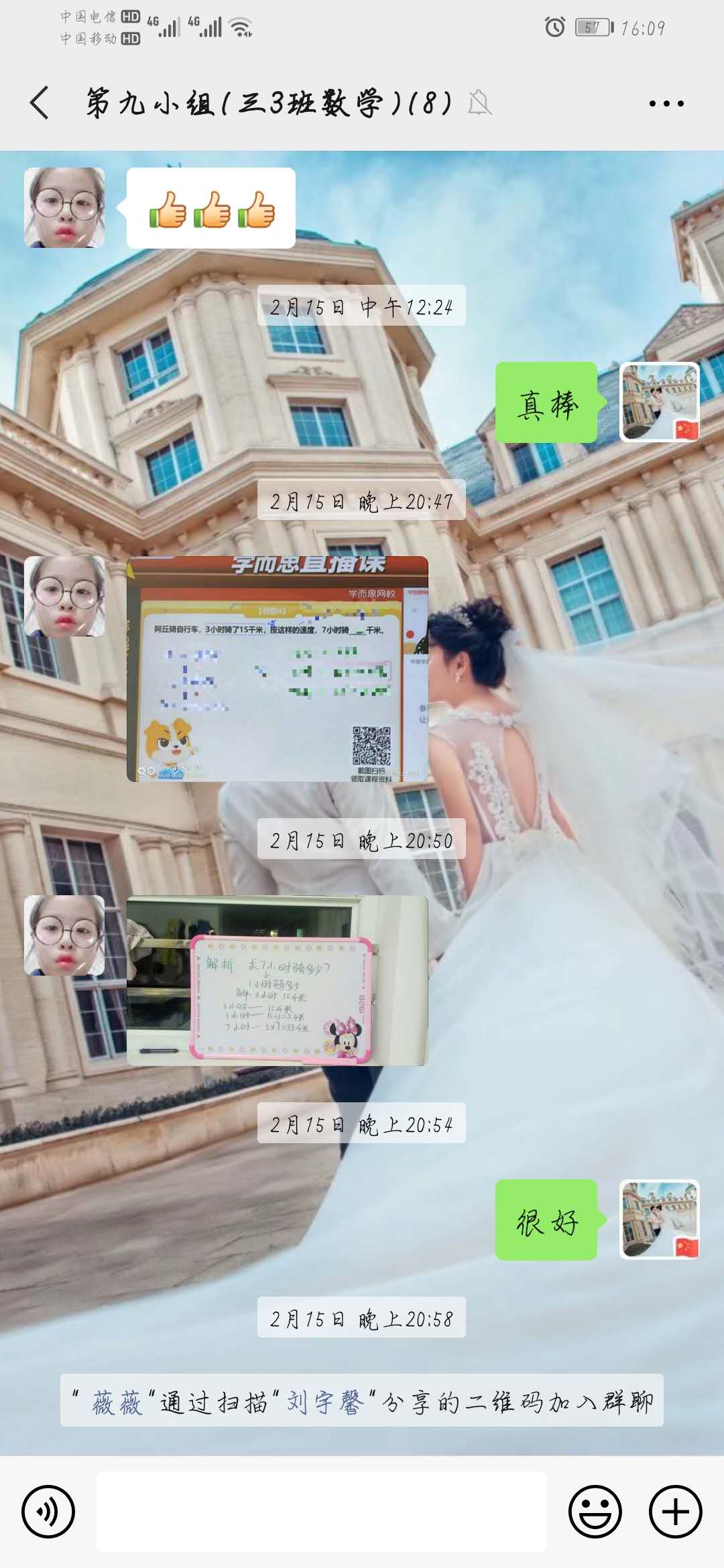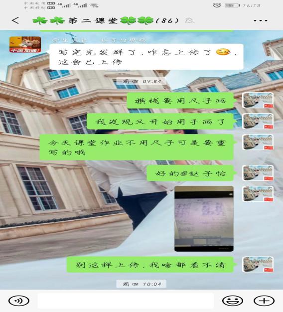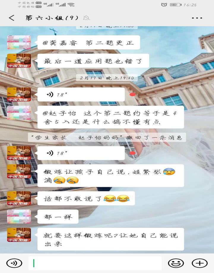 班级里其他小组也开始有了变化,之前班里性格比较腼腆的几个孩子,也开始大胆在视频里发表自己的见解和意见,各组里的”小老师”也开始了自己的空中课堂,勇敢的录制视频给大家讲题。