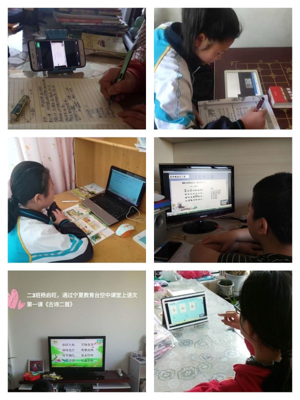 学生可以通过电脑、平板或手机上打开网址链接或者扫二维码的形式登录在线课堂进行观看学习,也可登录宁夏教育云平台网站查看视频回放。如果家里没手机的学生,通过观看教育电视台空中课堂和其他形式进行学习。