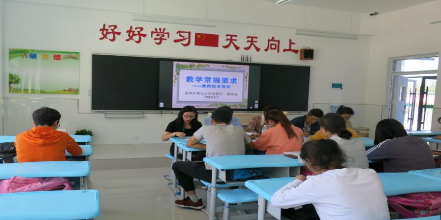 2020年9月7日中午12点50,银川市金凤区第九小学南校区召开了全体教师会议暨教师技能培训会,会议由徐红梅校长主持。会上,副校长毛菊冬、周静涛,主任何维东、大队辅导员詹阳分别从教学工作、德育安全工作及学校常规管理三个方面,对新学期的重点工作提出了新的要求与部署。