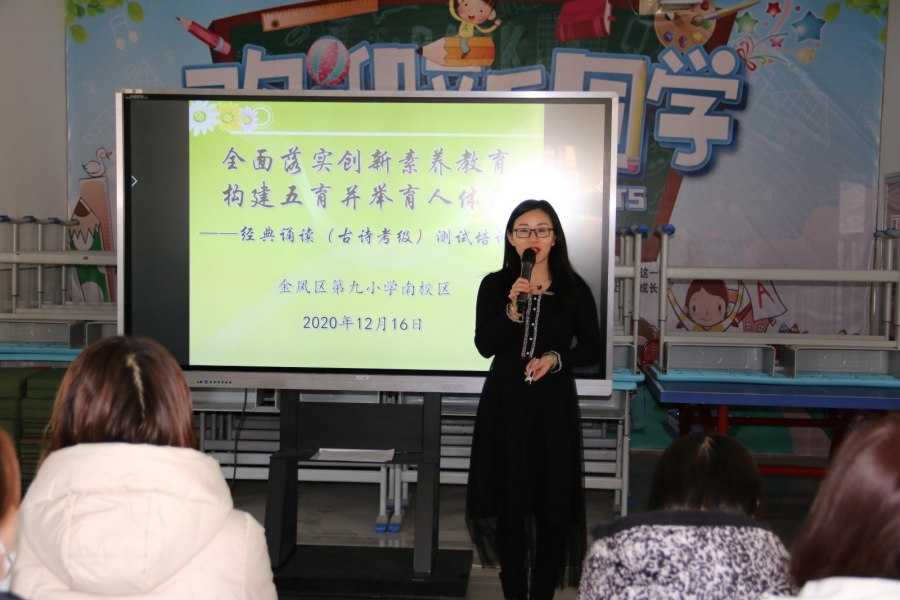 古诗词作为中华传统经典文化,字里行间表达意韵深远,备受大众喜爱。为更好的弘扬、传承经典,金凤九小南校区根据《金凤九小教育集团学生经典诵读--古诗考级测试方案》及“学生能力提升测试周”安排,于12月16日下午顺利开展“诗词伴我成长 经典浸润我心——学生古诗词考级测评活动”。